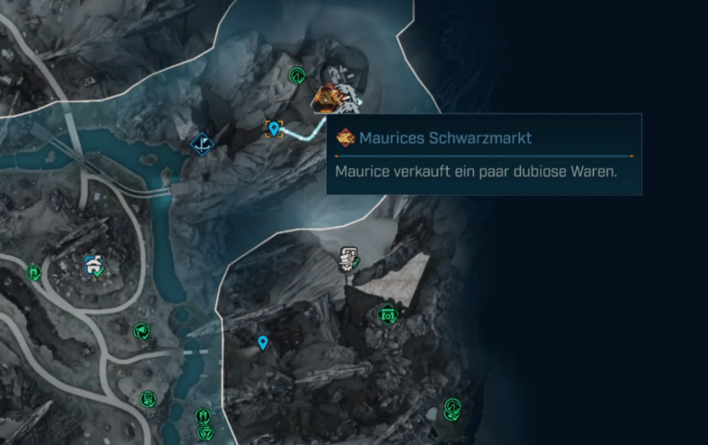 Den Schwarzmarkt-Automaten von Maurice findest Du in dem Gebiet Terminus-Weite, Region Höckersteig. Dort gibt es im Norden die Straf-Manufaktorium. Innerhalb dieses Gebäudes findest Du den Automaten.